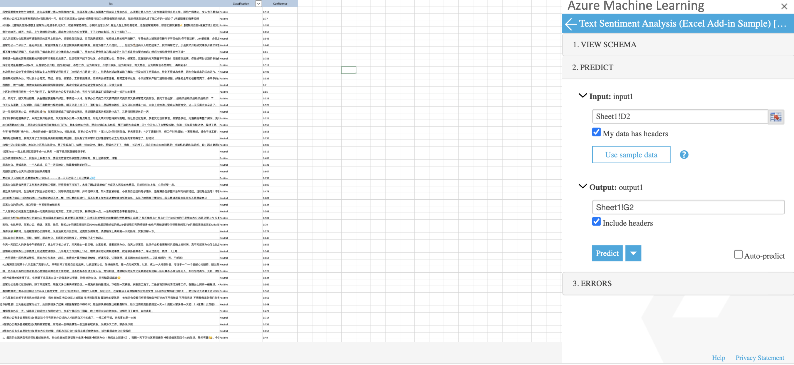 Showcase of using Azure Machine Learning to do the sentiment analysis