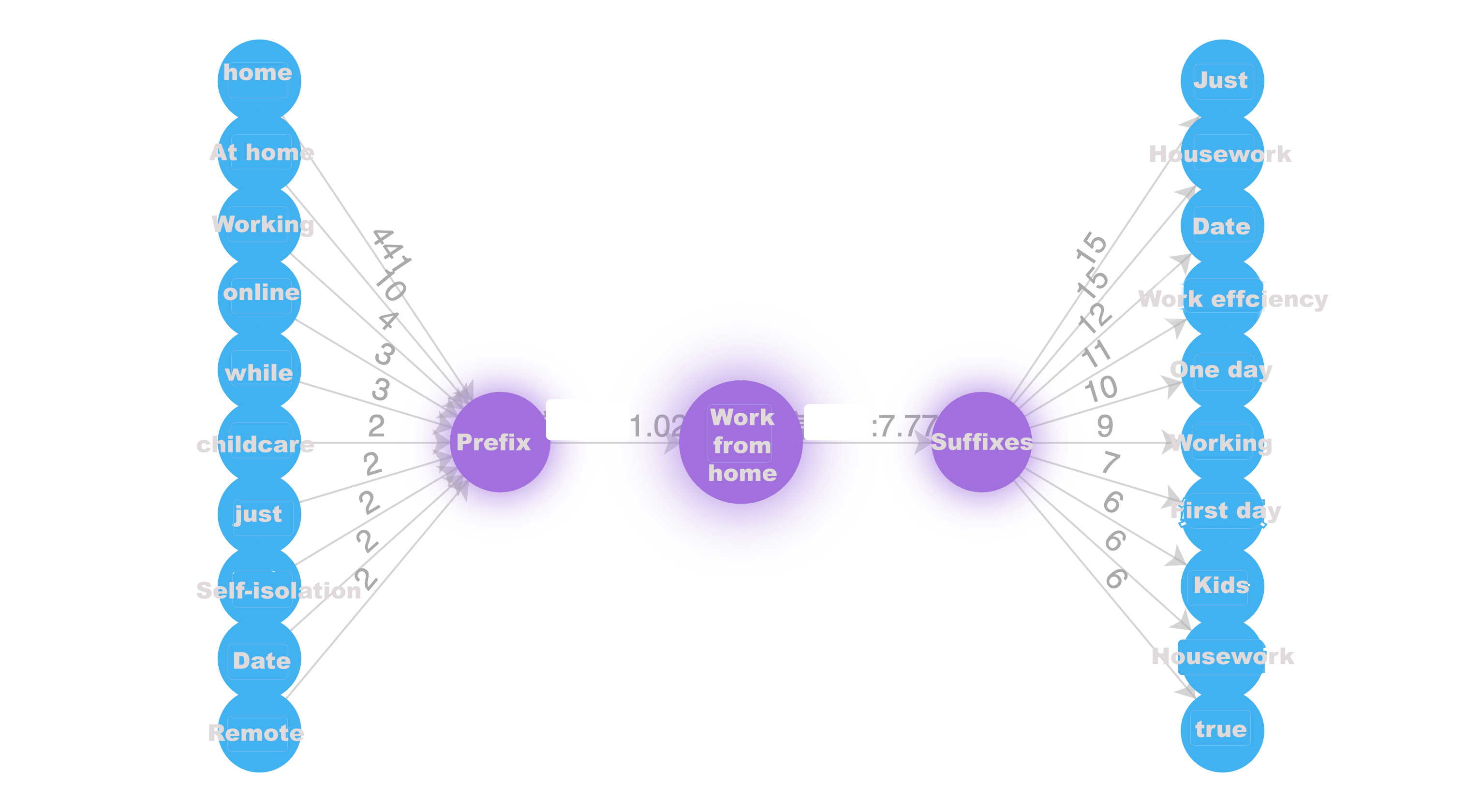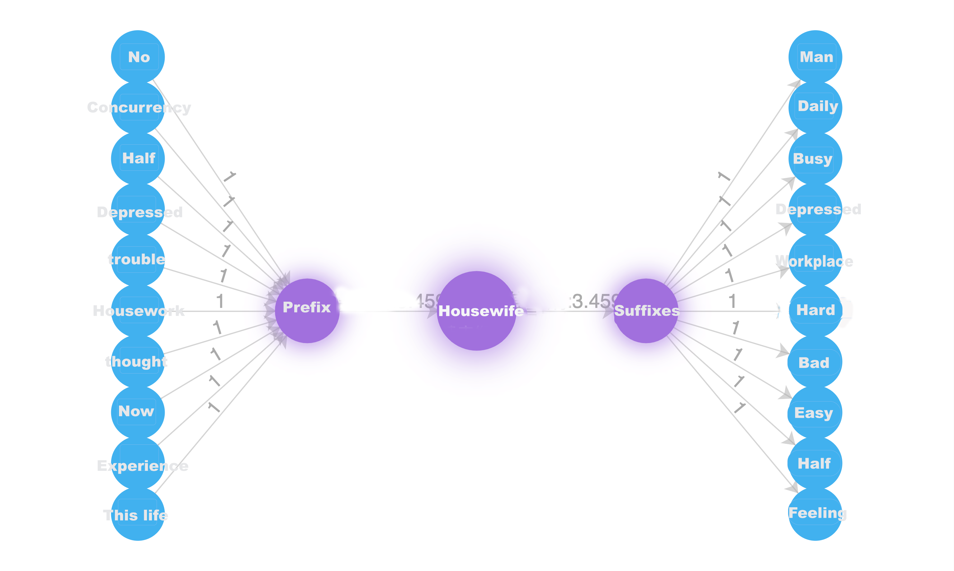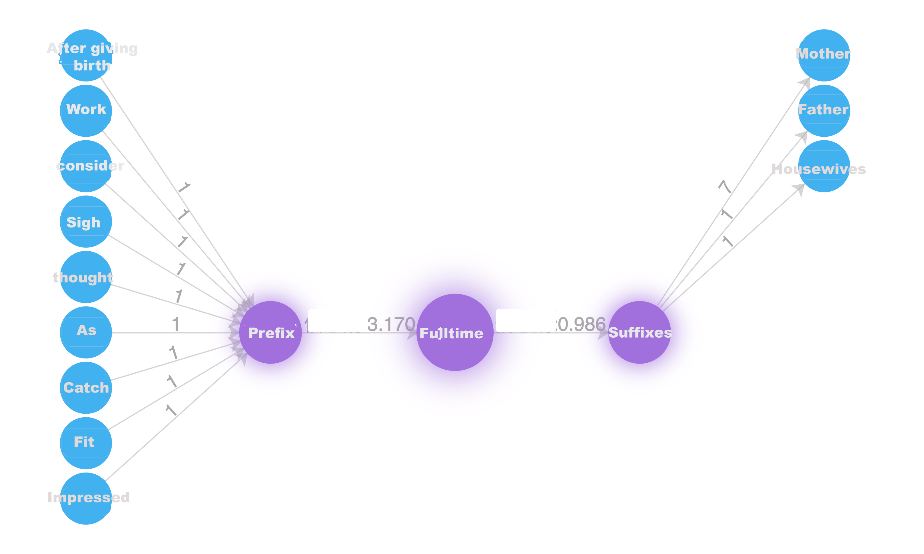 The content analysis visualization of the social media data. We choose the keywords "work from home" and two other words that related to our topic "fulltime" and "housewives" and analyze the relationship between these words in the social media content